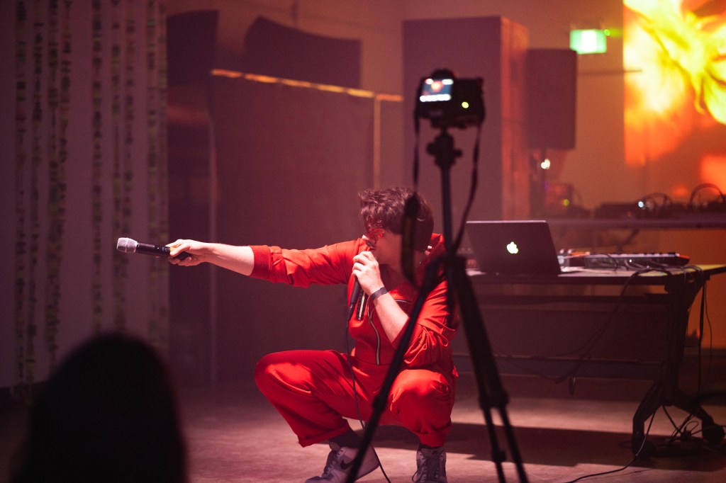 Bad Machine is a queer, disabled, and non-binary loop musician, comedian, TV writer, screen/voice actor, and clown. They are weird. Their live performances are unhinged, unexpected, and entirely improvised. If you come to a show, you can ask them to make music about anything, and they’ll do it for you from scratch. Their unique brand of groove-forward electro-funk unites hip-hop, jazz, house, bossa nova, soul, video game soundtracks, and more under one fly umbrella. With tracks ‘as offbeat as they are in the pocket,’ their musical catalogue is a wellspring of digital sounds played with distinctly analog feel. Their new album MORE! is now streaming everywhere. Also, they do a bunch of other things. Here they are. They’re the host of Amazon Prime’s E-Game On, the voice of The Squeaky Wheel, an alumnus of the Second City Toronto, and a performer in the IPF series Petra PI. They’re an editor for Queer Toronto literary magazine, and are a writer for Saloon Media’s History by the Numbers, and on the upcoming series GLAM and Confession Queens. They’ve also written for games, journals, news, and The Beaverton. They voice a host of strange animated characters, and have appeared in a bevy of films, tv shows, web series, commercials, and comedy sketches. Still, most of their free time is spent improvising music for people and hanging out with a German Shepherd named Beans. Check if it’s cap at badmachine.ca.